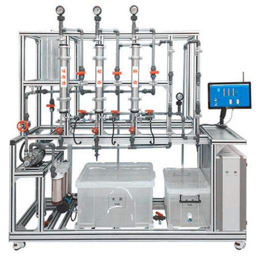 1 、 預過濾器: 20 英寸 5 μ m 粗濾器,數量 2 個。 2 、反滲透膜組件采用采用 4040 型 膜 ,膜直徑:φ 100mm ;長度: 1014mm ;脫鹽率: 95% ;最大壓力: 3.16MPa 。 采用不銹鋼壓力容器 。 3 、超 濾膜組件:聚丙烯中孔纖維,孔徑:0.01—0.3 μ m ,孔隙率:50%-55%,截留分子量:5萬,使用溫度:44℃-73℃;最大工作壓力:4Kg/cm 2 , 出水量為 60-600L/h 。 4 、納濾膜組件采用 4040 型 膜,不銹鋼外殼, 進水 pH 值 3.0 — 10 ,最高進水溫度 45-80 ℃。 采用不銹鋼壓力容器 。 5 、 微濾膜組件:塊狀炭 + 工程塑料外殼,出水量250-2500L/H,孔徑0.2μm。 6 、電導率儀測量:反滲透膜進水、出口淡水、出口濃水, 納濾膜 進水、出口淡水、出口濃水的濃度變化。共計 6 臺在線電導率儀,量程 0-1999μS/cm 。 7、 微濾膜出水流量: 管式流量計,測量范圍 6 0- 6 00L/h 。 8 、超濾膜淡水和濃水流量 : 管式流量計,測量范圍 25 - 25 0L/h 。 9 、反滲透膜淡水和濃水流量 : 管式流量計,測量范圍 16-160 L/h 。 1 0 、納濾膜 淡水和濃水流量 : 管式流量計,測量范圍 16-160 L/h 。 11 、 壓力:不銹鋼指針防震壓力表,測量范圍 0-0.6MPa 和 0-1.6MPa 。 12 、不銹鋼多級高壓離心泵:流量范圍 1.0-2.5 m 3 /h ,揚程 40-102m ,功率 0.75KW 。 13 、不銹鋼離心泵:流量范圍 0.5-3.5 m 3 /h ,揚程 16-28m ,功率 0.55KW 。 1 4 、原水槽:容積 80L ,優質 P P 材質,厚度 8mm 。 1 5 、出水槽:容積 80L ,優質 P P 材質,厚度 8mm 。 1 6 、管路:透明,壁厚≥2.0mm,透明可視材質。 1 7 、壓力開關:0~0.6MPa,低壓保護 , 延時保護 。 1 8 、電壓:380V,總功率: 2.0 kW 。 19 、 正泰電器:接觸器、帶燈開關、漏電保護空氣開關。 20 、外形尺寸: 20 00×550×2 0 00mm(長×寬×高) , 外形為可移動式設計, 帶剎車輪, 高品質鋁合金型材框架,無焊接點,安裝拆卸方便,水平調節支撐型腳輪 。 21 、工程化標識:包含設備位號、管路流向箭頭及標識、閥門位號等工程化設備理念配套,使學生處于安全的實驗操作環境中,學會工程化管路標識認知,培養學生工程化理念 。 |