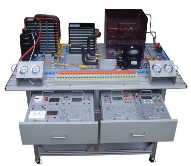 采用工業鋁型材實訓平臺,前面采用圓形型材設計,并安裝有淺藍色有機玻璃門板,內部可以放置工具,上面采用圓形網孔板設計,用于銅管管路工藝制作。 長 ×寬×高為1700mm×800mm×1750mm |
