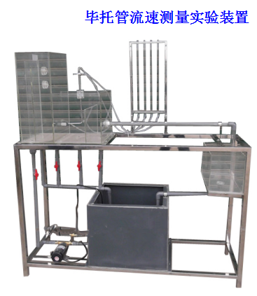 水泵、蓄水箱、畢托管、 測壓計、管嘴射流裝置、 恒壓水箱、 計量水箱、 刻度標尺、秒表、 自循環 系統、不銹鋼框架。