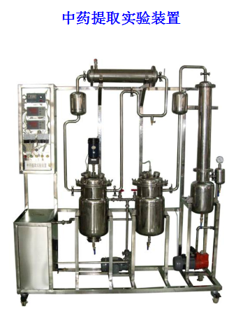 本裝置由提取罐、蒸發器、攪拌電機、列管式加熱器、冷凝器、油分器、收油器、藥液泵、貯液罐、過濾器、真空泵、調速器、數顯溫度儀、不銹鋼框架、控制屏等組成。提取罐、蒸發器配導熱油加熱系統,提取罐、蒸發器頂部蒸汽出口均設置了除沫器。
