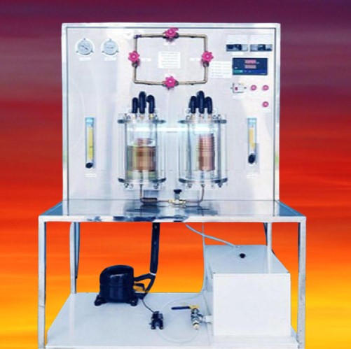 3. 換熱器 2 套:冷凝壓力低于 0.2MPa ,蒸發壓力 0MPa 左右 , 耐高溫;螺旋狀銅管盤,高壓無機玻璃材質,半弧形有機玻璃保護罩。