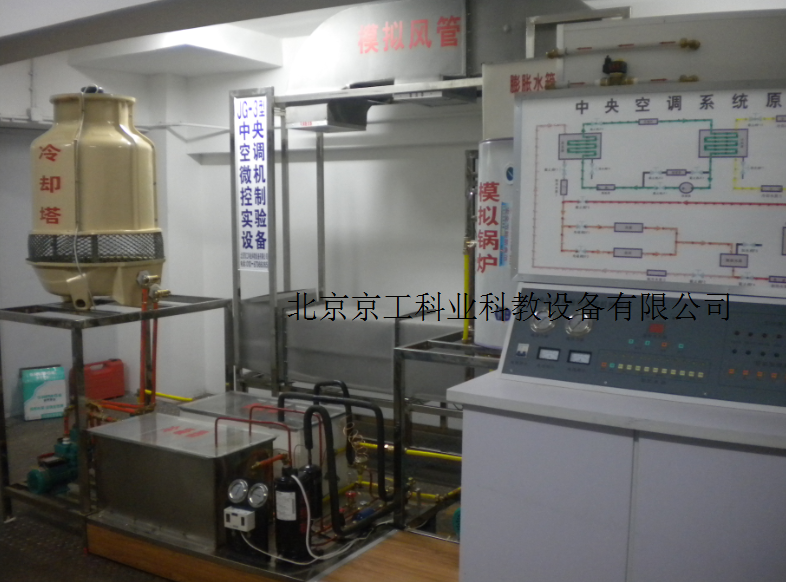 隨著社會的發展,人們的生活水平不斷提高,中央空調在大型商場、賓館、寫字樓、商住樓等許多方面得到越來越廣泛的應用。中央空調的設計、管理、維修在現代生活中越來越重要。為了便于人們了解、學習中央空調的基本原理、基礎知識,掌握其管理、維護及維修方法,本公司專業技術人員開發生產中央空調系列產品。為了更好的滿足各大院校的教學需要,在原來開發的中央空調實驗設備的基礎上,配備了RS-232串行通訊接口,可直接與電腦連接,由電腦控制軟件控制整個實驗臺的運行,包括:總控臺啟動、制冷、制熱、冷卻水泵、冷卻風機、冷水泵、壓縮機、電磁閥、制熱水泵故演示,制冷、制熱的溫度設定等。最大的特點是,通過傳感器將空調狀況實時反饋至電腦,能夠用時顯示蒸發器、冷凝器、模擬鍋爐、冷卻塔的進出口溫度,房間風管溫度、隨時顯示制冷或制熱的設定溫度。有利于教學記錄、采樣,通過打印可提供進行理論分析的根據。本實驗設備配備了電腦插口、電壓表、電流表、壓力表、溫度顯示器、工作指示燈、故障演示按鈕。壓縮機、蒸發器(透明蓋)、冷凝器(透明蓋)、壓力控制器、毛細管、過濾器、膨脹閥、視液鏡、儲液器、噴淋式冷卻塔、冷卻一級泵、冷卻二級泵、制冷一級泵、制冷二級泵等。中央空調實驗設備是將中央空調微型化,同時保持整個中央空調系統的完整性和合理性。本實驗系統采用微機控制能單獨演示中央空調的夏天制冷、冬天制熱循環,控制系統由電腦控制與手動控制二種方法演示。為了解各物參物的變化情況和系統的工作狀況。實驗臺增加了一些鋪助結構,使其能人為地制造各種在實際中可生產的系統故障,方便學員了解故障的產生和排除故障的方法。系統在產生這些故意后,按照說明書中列出的各種解決方法,系統能很快恢復正常。我們始終堅持為教育服務的原則,爭取為廣大的院校師生開發生產更多的教學儀器,歡迎大家提供寶貴的意見和建設。