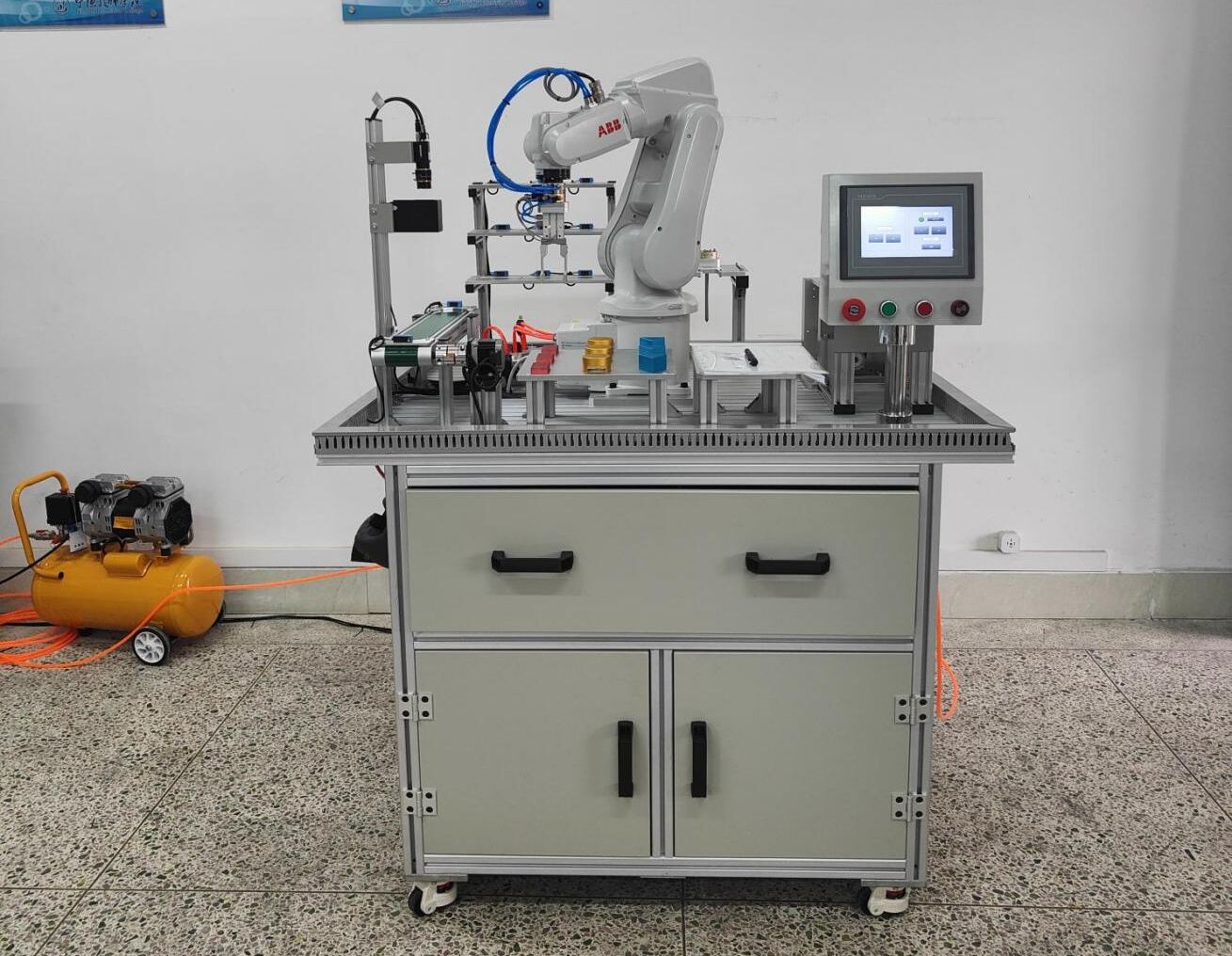 工業機器人綜合實訓平臺 是專門針對工業機器人領域的一套實訓實驗教學系統,按照模塊化結構進行設計,主要由六關節工業機器人、視覺系統、 PLC 模塊、電氣控制系統等組成,可進行工業機器人相關技術開發、維護維修、示教等方面專項實訓教學,能夠完成關鍵設備的特性和參數設置、工業機器人手動控制及基本參數設置、工業機器人 IO 通信及 PLC 信息交互、工業機器人單軸運動與線性運動控制、工業機器人工具 TCP 參數標定、工業機器人工件坐標系參數標定及多坐標系切換、基于關鍵點的軌跡編程、模擬碼垛工藝應用編程、工業機器人與 PLC 的通訊與聯調、觸摸屏控制應用等實訓任務。
