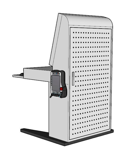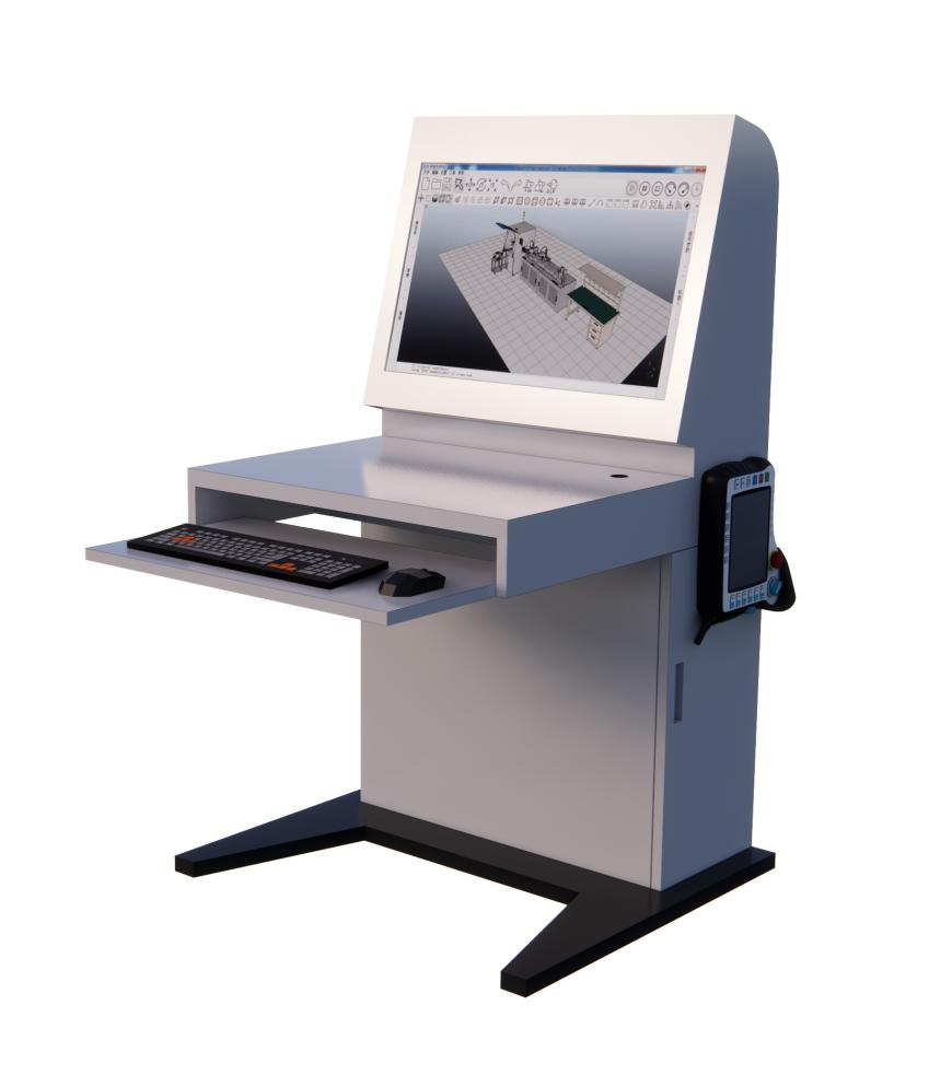 實訓(xùn)臺整體采用琴式設(shè)計,選用 1mm 厚鋼板制作,表面經(jīng)環(huán)保噴塑處理,整體規(guī)格: 700mm × 600mm × 1200mm ,背面大開門設(shè)計,方便計算機、顯示器、控制器的安裝接線。正面設(shè)有鍵盤、鼠標(biāo)位置。