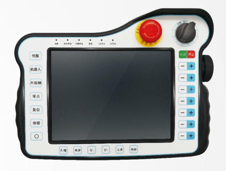 (4) 方便地實現(xiàn)對機器人的手動操作、示教編程、機器人運行等人機對話功能。 8inch TFT 大屏幕,提供豐富、清晰的人機交互窗口,提升產(chǎn)品檔次;