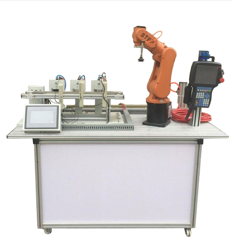 本系統在鋁合金導軌式實訓臺上安裝有送料、機器人搬運、材料分揀的三個基本工作機構單元,構成一個典型的自動生產線的機械平臺。系統機構采用了氣缸驅動、變頻器調速驅動、直流電機驅動。系統的控制方式采用了PLC及觸摸屏控制等技術。采用模塊組合式的結構,各工作單元是相對獨立的模塊,并采用了標準結構和抽屜式模塊,具有較強的互換性。