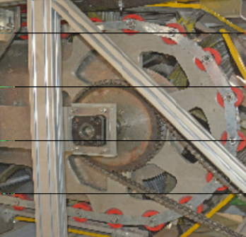 由 扶手 齒輪 、扶手摩擦輪、張緊輪、托輥輪、壓輥輪、托帶鏈、回轉(zhuǎn)鏈行扶手導軌組成扶手帶動力系統(tǒng)。