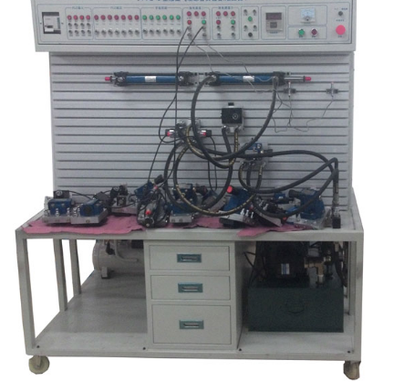 該實驗臺是根據《液壓氣動傳動》、《氣動控制技術》等通用教材設計而成,集可編程控制器和各種氣動元件模塊,液壓元件模塊為一體,除可進行常規的氣動、液壓基本控制回路實驗外,還可進行液壓,氣動組合應用實驗及液壓、氣動技術課程設計。實驗臺采用PLC控制方式和繼電器控制兩種方式,使學生在掌握傳統的繼電器控制之外,學習PLC編程控制,并具備PLC控制與計算機通訊以及在線調試等實驗功能,其完美結合了氣液技術和電氣PLC控制技術,適用電工、機電一體化等專業實訓考核。