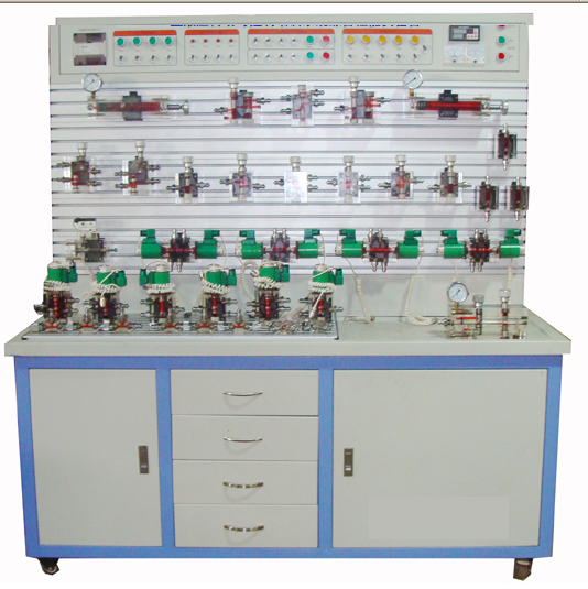 產品簡介: 該實驗臺為液壓回路創新設計教學實驗臺。用透明液壓元件,透明尼龍軟管,紅色液壓油連成可視液壓回路,用新一代組態王軟件動態模擬實驗過程的可視化實驗系統