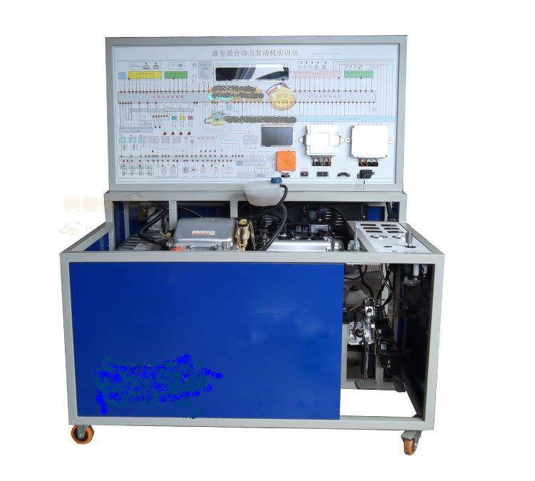 1 )本汽車混合動力系統維修與調試實訓考核 裝置 主要由 發動機 、變速器、 M1 電機、 M2 電機、變頻器、 HV 蓄電池、儀表、多功能顯示器組成,這種經典結構可以使得油電混合動力正常起動運行、油電混合動力各模擬運行工況正常(包含:怠速、加速、減速、下坡、上坡、制動、負貨等工況、油電自動 / 手動切換等)可使學生了解油電混合動力的基本構造及工作原理,通過實物認識各傳感器及執行器的位置及工作原理。通過顯而易見的電腦檢測端子,配合萬用表和示波器檢測。可設置解油電混合動力常見故障,通過故障顯示,進行學生故障分析、檢測診斷實訓,培養學生故障分析檢測診斷思維能力,起步時無需 發動機 運轉,可直接利用電動機起動,可達到零排量效果,可在制動時使剩余能量回沖 HV 蓄電池。