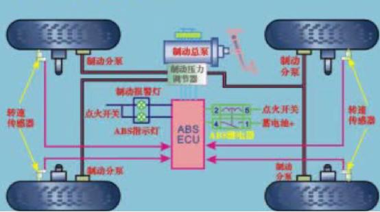 面板上裝有 ABS 故障指示燈 , 可反映 ABS 電控系統(tǒng)工作狀況 , 當(dāng) ABS 燈亮?xí)r , 表現(xiàn) ABS 電控部分有故障 , 制動時 ABS 失效 , 系統(tǒng)以常規(guī)制動方式進行 .