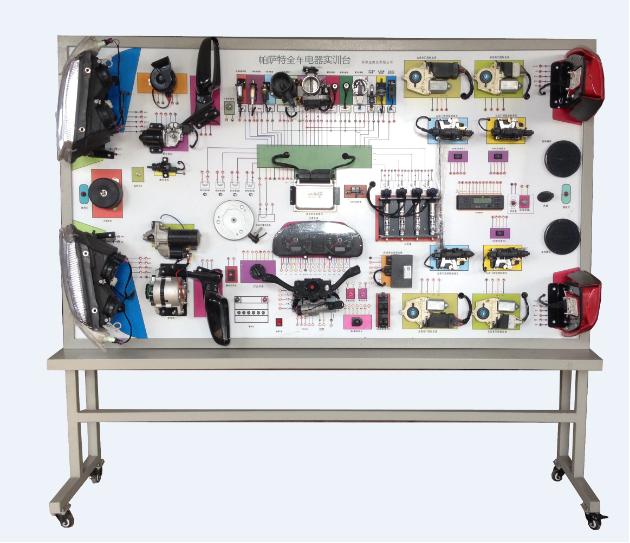 本實驗臺以帕薩特 B5 全車電器系統實物為基礎,由移動臺架、示教面板二部分組成。適用于中高等職業學院和培訓機構的汽車全車電器系統構造與維修實訓教學,能夠滿足對全車電器系統的結構、工作原理、故障設置及診斷的教學需要。本實驗設備操作方便,安全可靠,易于維護。
