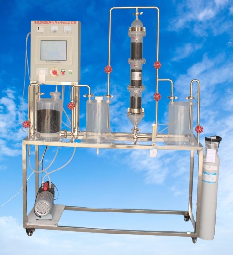本實驗裝置采用有機玻璃吸附塔,以活性碳為吸附劑,通過模擬發生的有機物氣體或 S O 2 氣體進行吸附試驗,得到吸附凈化效率、不同空塔氣速下穿透曲線和保護作用時間等數據。