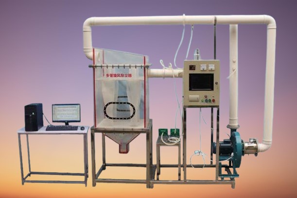 多管旋風除塵器系利用含塵氣體的流動速度,使氣流在除塵裝置內沿某一定方向作連續旋轉運動,粒子在隨氣流的旋轉中獲得離心力,導致粒子從氣流中分離出來。多管旋風除塵器具有結構簡單、造價低、設備維護修理方便的優點,而且可用于高溫含塵煙氣的凈化,也可用其回收有價值的粉塵。本實驗系統主要用于演示多管旋風除塵過程的原理。