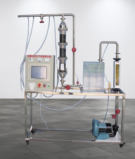 本實驗裝置采用有機玻璃吸附塔,以活性碳為吸附劑,通過模擬發生的有機物氣體或 SO 2 氣體進行吸附試驗,得到吸附凈化效率、不同空塔氣速下穿透曲線和保護作用時間等數據。