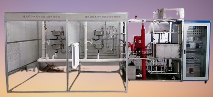 建筑給排水電氣及自動化實訓系統整體采用鋁型材框架和網孔板進行設計,主要給排水管道設備安裝在鋼架底座上、具備開放式的特點,由生活給水系統、消防給水系統、熱水給水系統、排水系統、污水處理系統和控制系統六個部分組成。