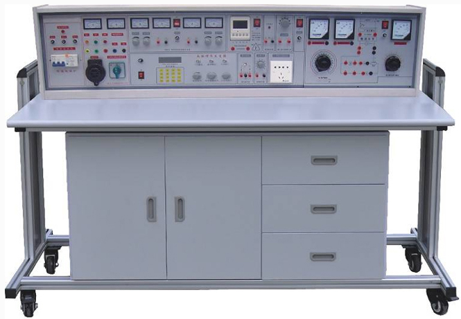 3、示教控制臺: 1臺示教控制臺,分別控制12臺學生臺的電源,通用電路板演示屏立在實驗臺上,尺寸150cm×70cm,用于講解、演示。