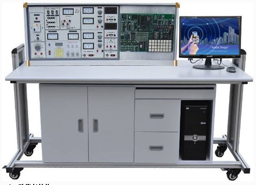 一桌二座,桌面中央設(shè)置九孔通用電路插板,元件盒在其上接插成數(shù)字、模擬實(shí)驗(yàn)電路完成實(shí)驗(yàn)。元件盒盒體透明,內(nèi)裝元件一目了然,盒蓋印有元件符號,盒蓋與盒體采用科學(xué)的壓卡式結(jié)構(gòu),維修拆裝方便。實(shí)驗(yàn)桌左右各有一個柜,柜中存放元器件,中部抽屜存放工具、萬用表、導(dǎo)線等。桌面尺寸: 160 × 70cm 。