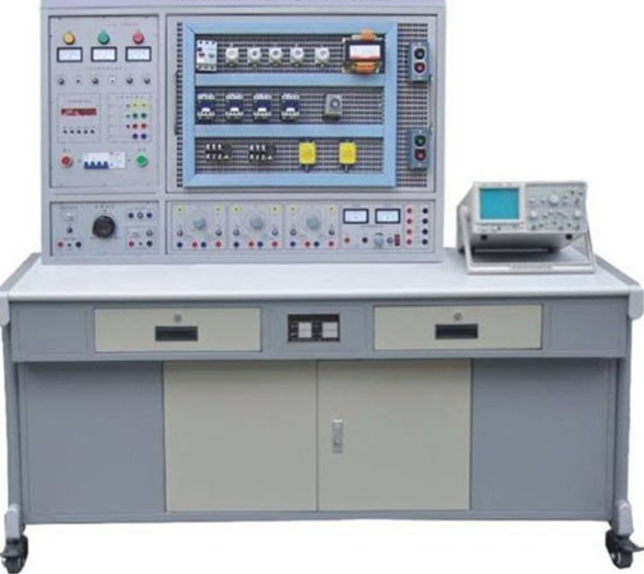 四、實訓操作桌 :鐵質雙層亞光密紋噴塑,桌面為防火、防水、耐磨高密度板,設有抽屜和元件儲存柜,結構堅固、造型美觀大方。