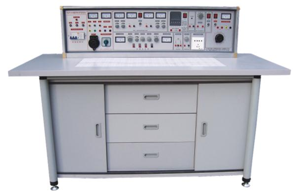 (一)實驗桌: 學生實驗桌 12 張,一桌二座,實驗桌外形尺寸為 160 × 70 × 80cm 。桌子中央配置九孔電路插板,電路板注塑而成,表面布有九孔成一組相互聯通的插孔,元件盒在其上任意拼插成實驗電路。元件盒盒體透明直觀,內裝電阻、電容、電感、二極管、三極管、場效應管、可控硅等元件來完成原理實驗。內裝元件一目了然,盒蓋印元件符號,線條清晰美觀。盒體與盒蓋采用較科學的壓卡式結構,維修、拆裝方便。繼電部分訓練元器件已裝在特制的元件盒上,實訓時插在九孔電路板上即可連線實驗,方便,靈活。電子技能實訓項目由二十幾套實訓電路板和相應元器件來完成。每張操作桌配有一粒膠皮板,保護通用電路板和桌面 ( 如需要在桌上放置電動機、焊接等 ) 桌子下部是元器件儲存柜,放置實驗元件、器材、工具等。