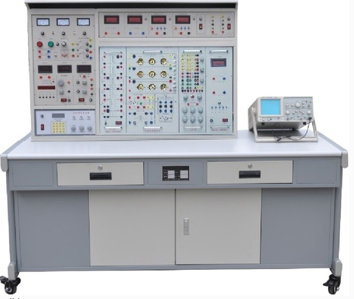 實驗桌為鐵質雙層亞光密紋噴塑結構,桌面為防火、防水、耐磨高密度板;左右設有兩個大抽屜(帶鎖),用于放置工具及資料。右邊設有放置示波器用的可拆卸擱板。