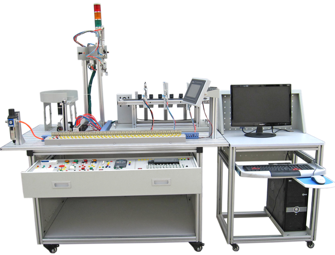 光機(jī)電一體化實(shí)訓(xùn)考核裝置由鋁合金導(dǎo)軌式實(shí)訓(xùn)臺(tái)、典型的機(jī)電一體化設(shè)備的機(jī)械部件、 PLC 模塊、變頻器模塊、按鈕模塊、電源模塊、模擬生產(chǎn)設(shè)備實(shí)訓(xùn)模塊、接線端子排和各種傳感器、計(jì)算機(jī)等組成。整體結(jié)構(gòu)采用開放式和拆裝式,機(jī)電一體化實(shí)訓(xùn)裝置用于機(jī)械部件組裝,可根據(jù)現(xiàn)有的機(jī)械部件組裝生產(chǎn)設(shè)備,也可添加機(jī)械部件組裝其他生產(chǎn)設(shè)備,使整個(gè)裝置能夠靈活的按教學(xué)或競(jìng)賽要求組裝具有生產(chǎn)功能的機(jī)電一體化設(shè)備。模塊采用標(biāo)準(zhǔn)結(jié)構(gòu)和抽屜式模塊放置架,互換性強(qiáng);按具有生產(chǎn)性功能和整合學(xué)習(xí)功能的原則確定模塊內(nèi)容,使教學(xué)或競(jìng)賽時(shí)可方便的選擇需要的模塊。設(shè)備需完全符合電工電子全國(guó)職業(yè)技能大賽所要求,同時(shí)還要求具有可拓展功能,可以組成更加大型的生產(chǎn)模擬系統(tǒng),以配合各個(gè)用戶學(xué)校不同層次,不同專業(yè)的教學(xué)及培訓(xùn)要求。