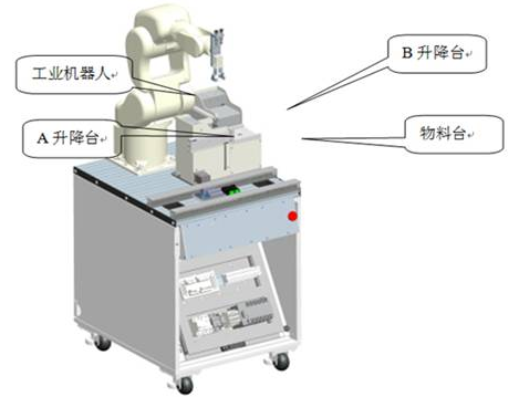 AB兩個升降臺分別存儲包裝盒底和包裝盒蓋;工業機器人包裝工作站啟動后, A 升降臺將包裝盒底推向物料臺上, A 升降臺隨之上升一個盒底位;等待上一站檢測合格的物料瓶到位,當上一站合格物料瓶到位,啟動工業機器人將瓶子抓取,并放入物料臺上的包裝盒底內;當包裝盒底 4 個工位放滿瓶子,工業機器人自動從 B 升降臺上吸取盒蓋,蓋在包裝盒上, B 升降臺隨之上升一個盒蓋位,并通知成品自動入庫工作站入庫。