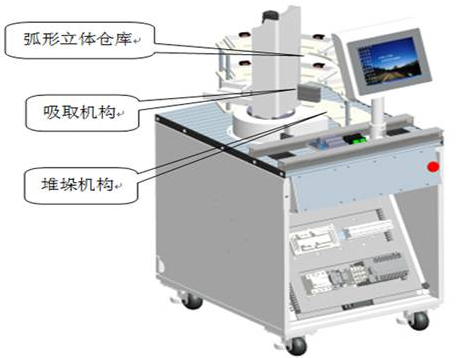 由一個弧形立體倉庫和 2 軸伺服堆垛機構組成,當工業機器人工作站完成包裝任務,接收信號把機器人工作站物料臺上的包裝盒體吸取出來,然后按要求依次放入倉儲相應倉位。 2 × 3 的倉庫每個倉位均安裝一個檢測傳感器,堆垛機構水平軸為精密分度盤機構,垂直機構為渦輪絲桿升降機構,均由西門子 V90 精密伺服電機進行高精度控制。