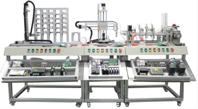1. 實(shí)訓(xùn)系統(tǒng)安裝平臺(tái)(型材結(jié)構(gòu)),各站位置可在平臺(tái)上自由調(diào)整。系統(tǒng)全部采用工業(yè)元器件,所有傳感器、執(zhí)行器、控制器接口開(kāi)放,系統(tǒng)內(nèi)部含有網(wǎng)絡(luò)接口可組成 PLC 網(wǎng)絡(luò),包含 PLC 、傳感器、變頻調(diào)速、步進(jìn)電機(jī)、工業(yè)網(wǎng)絡(luò)、氣動(dòng)等技術(shù)的綜合應(yīng)用實(shí)訓(xùn)系統(tǒng)。