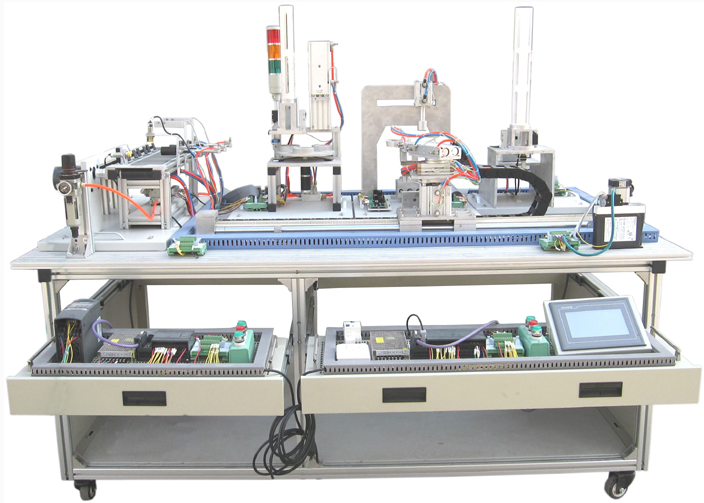 實訓裝置由由鋁合金導軌式實訓臺、典型的機電一體化設備的機械部件、 PLC 模塊、變頻器模塊、按鈕模塊、電源模塊、模擬生產設備實訓模塊、接線端子排和各種傳感器、計算機等組成。整體結構采用開放式和拆裝式,實訓裝置用于機械部件組裝,可根據現有的機械部件組裝生產設備,也可添加機械部件組裝其他生產設備,使整個裝置能夠靈活的按教學或競賽要求組裝具有生產功能的機電一體化設備。模塊采用標準結構和抽屜式模塊放置架,互換性強;按具有生產性功能和整合學習功能的原則確定模塊內容,使教學或競賽時可方便的選擇需要的模塊。設備需完全符合電工電子全國職業技能大賽所要求,同時還要求具有可拓展功能,可以組成更加大型的生產模擬系統,以配合各個用戶學校不同層次,不同專業的教學及培訓要求。