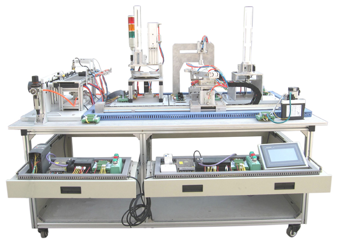 光機電氣一體化控制實訓設備由 由鋁合金導軌式實訓臺、典型的機電一體化設備的機械部件、 PLC 模塊、變頻器模塊、按鈕模塊、電源模塊、模擬生產設備實訓模塊、接線端子排和各種傳感器、計算機等組成。整體結構采用開放式和拆裝式,實訓裝置用于機械部件組裝,可根據現有的機械部件組裝生產設備,也可添加機械部件組裝其他生產設備,使整個裝置能夠靈活的按教學或競賽要求組裝具有生產功能的機電一體化設備。模塊采用標準結構和抽屜式模塊放置架,互換性強;按具有生產性功能和整合學習功能的原則確定模塊內容,使教學或競賽時可方便的選擇需要的模塊。設備需完全符合電工電子全國職業技能大賽所要求,同時還要求具有可拓展功能,可以組成更加大型的生產模擬系統,以配合各個用戶學校不同層次,不同專業的教學及培訓要求。