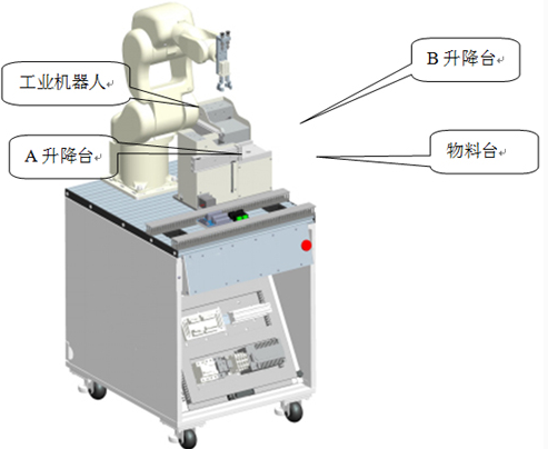 AB兩個升降臺分別存儲包裝盒底和包裝盒蓋;工業(yè)機(jī)器人包裝工作站啟動后, A 升降臺將包裝盒底推向物料臺上, A 升降臺隨之上升一個盒底位;等待上一站檢測合格的物料瓶到位,當(dāng)上一站合格物料瓶到位,啟動工業(yè)機(jī)器人將瓶子抓取,并放入物料臺上的包裝盒底內(nèi);當(dāng)包裝盒底 4 個工位放滿瓶子,工業(yè)機(jī)器人自動從 B 升降臺上吸取盒蓋,蓋在包裝盒上, B 升降臺隨之上升一個盒蓋位,并通知成品自動入庫工作站入庫。