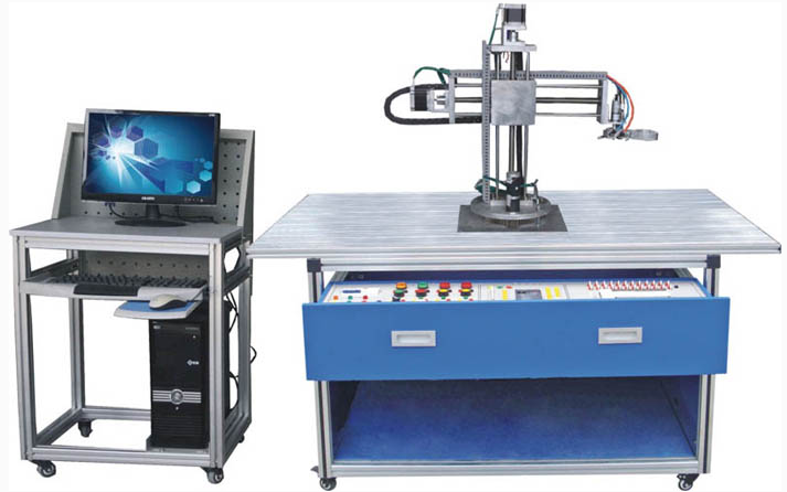 工業(yè)機械手實訓(xùn)裝置為坐標式機械手,可完成機械手旋轉(zhuǎn)、手臂垂直上下移動、手臂水平移動,手爪旋轉(zhuǎn)四個自由度的位置精確控制。同時配置晶體管式可編程控制器,用于對整個機械手進行復(fù)雜的位置控制。通過在該實訓(xùn)裝置上的實訓(xùn)和操作,學(xué)生可熟練掌握 PLC 高級指令、傳感器、旋轉(zhuǎn)編碼器、氣動控制、步進電機、氣動手指、直流電機、精確機械位置傳動等技術(shù)的綜合應(yīng)用。