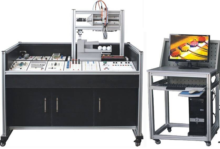 單片機技術(shù)應(yīng)用實訓(xùn)考核裝置,單片機功能控制實訓(xùn)考核平臺學(xué)生通過在該實訓(xùn)室訓(xùn)練,了解CPU硬件結(jié)構(gòu)特點,熟練掌握單片機的編程設(shè)計方法,培養(yǎng)學(xué)生應(yīng)用單片機的開發(fā)設(shè)計能力。采用烤漆鋼板制作的臺式結(jié)構(gòu)。單片機實訓(xùn)臺的抽屜柜用于存放實訓(xùn)模塊,抽屜柜與臺面之間布置實訓(xùn)模塊安裝支架,最上一層是工作臺臺面。用于技能競賽時在臺面上放置設(shè)備安裝底板,在底板上安裝試題擬定的單片機控制裝置需要的模塊,連接控制電路,編寫的控制程序輸入單片機后,按下運行指令開關(guān),單片機控制裝置就按程序運行。放置在單片機實訓(xùn)室中,這就是一張實訓(xùn)臺。當(dāng)講解理論或?qū)嵱?xùn)項目中的相關(guān)知識時,可以當(dāng)做課桌;當(dāng)需要進(jìn)行實際操作時,將臺面打開,就露出放置在安裝支架上的模塊,在需要的實訓(xùn)模塊間按實訓(xùn)要求連接電路,編寫控制程序,就可以按照設(shè)計的實訓(xùn)項目進(jìn)行單片機技術(shù)的教學(xué)了,同時還能完成智能物料搬運裝置的提升實訓(xùn)。