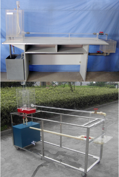 配置:移動式不銹鋼實驗臺、有機玻璃整流穩壓水箱、雷諾管、顏料盒、顏料針管、計量箱、 PVC 板水箱、防腐潛水泵、循環管閥、 7 寸觸摸顯示屏、流量數顯裝置、控制箱。
