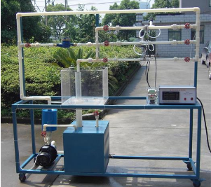 循環水箱(工程塑料厚 4mm、容積0.08立方米)、循環水泵 (型號: AP4550 、產地:廣東振華電器有限公司) 、測試管段:渦輪流量計(工程塑料 D=25mm)、孔板流量計(工程塑料D=20/10mm)、文丘里流量計(工程塑料D=20mm)、渦街流量計(工程塑料D=25)、差壓傳感器、計量水箱(有機玻璃厚4mm、容積10L)、穩壓罐等。