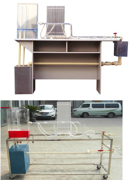主要配置:移動式不銹鋼實驗臺;有機玻璃整流穩壓水箱;高位突擴突縮粗、細管,閥門;測壓板;實驗管道及控制閥門 ; 計量箱;水箱;防腐潛水泵等。