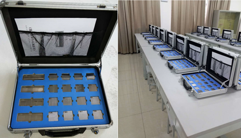 表面粗糙度對比測量組合實訓裝置是根據《公差配合與技術測量》課程的基本教學要求,精心設計的一套表面粗糙度對比測量組合訓練產品。它由對比樣塊、檢測零件、配套圖紙及實訓指導書組成。其目的是通過表面粗糙度對比測量,加深學生對表面粗糙度基本概念的了解,掌握表面粗糙度測量的方法的技能,為公差配合在后續課程中的應用奠定扎實的基礎。