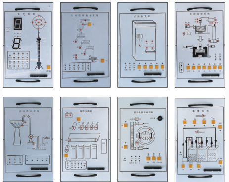 該裝置是為了配合 PLC 可編程控制器實驗臺使用而設計的外接演示裝置。它由 LED 發光二極管、大型 LED 數碼管、直流電機、步進電機等執行機構用其他外圍電路模擬實際工業控制過程中的狀態,它形象生動的演示了 PLC 的整個執行過程。通過該裝置,可以鍛煉學生的動手能力,能夠形象生動的執行機構驗證自己編寫程序的正確性,掌握 PLC 的實際應用,增強學生對 PLC 的學習興趣。演示掛箱后蓋由鋁合金注塑而成,箱體結構合理,工藝先進,美觀大方。該裝置在演示屏上位置可任意移動、互換。