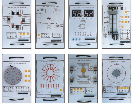 演示裝置上對 PLC 的輸入輸出均采用 24V 電源, 5V 電源供執行機構中的外圍使用,每套演示裝置主要由十七塊實驗掛箱組成,它們的型號分別為: