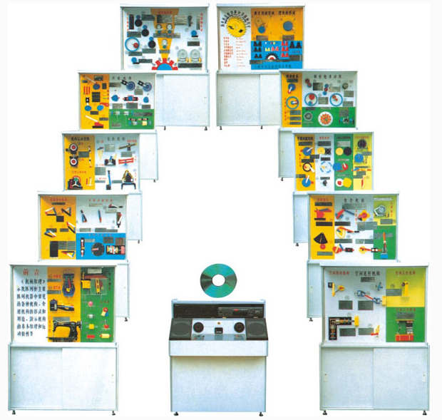 機械原理》展示柜是根據大、中專院校、枝校、職業學校的機械原理教學大綱設計的電化教學設備。本套展示柜共分十個柜。