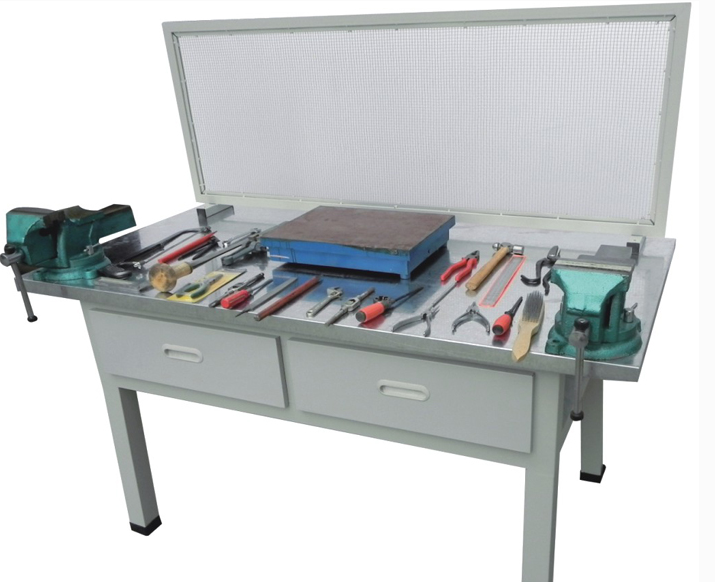 鉗工實驗室(一張桌 2 工位 / 組)每組詳細配置如下:可以完成常用工具的認識和使用,錘、鋸、銼、鑿、劃線、裝配、調試、安裝、維修等教學工具。