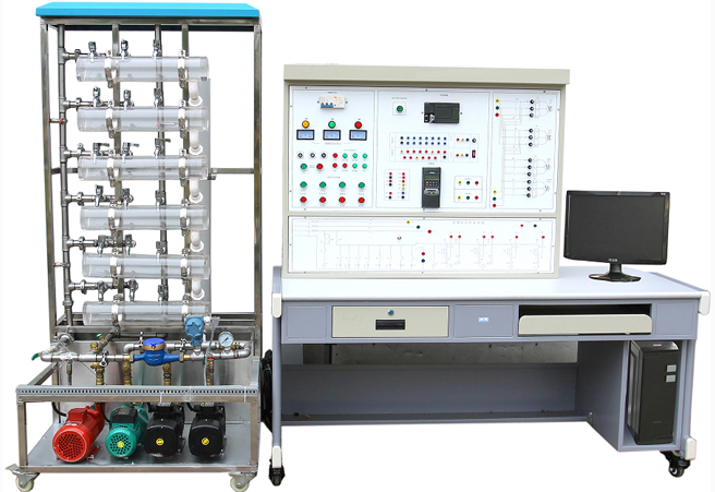 “變頻恒壓供水系統(tǒng)實訓(xùn)裝置”采集 PLC 、變頻調(diào)速、過程控制、工程組態(tài)技術(shù)于一體。它是由控制平臺和六層住宅消防、生活供水系統(tǒng)(實物模型)兩大部分組成,包含了西門子 PLC 、西門子變頻器、變頻磁力驅(qū)動泵、休眠泵、消防泵、壓力變送器、壓力儀表、輸水管道、消防栓、家用水龍頭、蓄水池等工程設(shè)備。控制平臺采用 PLC+ 變頻器的開放式控制結(jié)構(gòu),可以完成多種模式下的樓層恒壓供水實訓(xùn),為研究變頻恒壓供水技術(shù)提供了一個開放的操作平臺。它是一款適用于高等院校電氣自動化、樓宇自動化、建筑電氣、智能建筑等專業(yè)的綜合型實訓(xùn)設(shè)備。