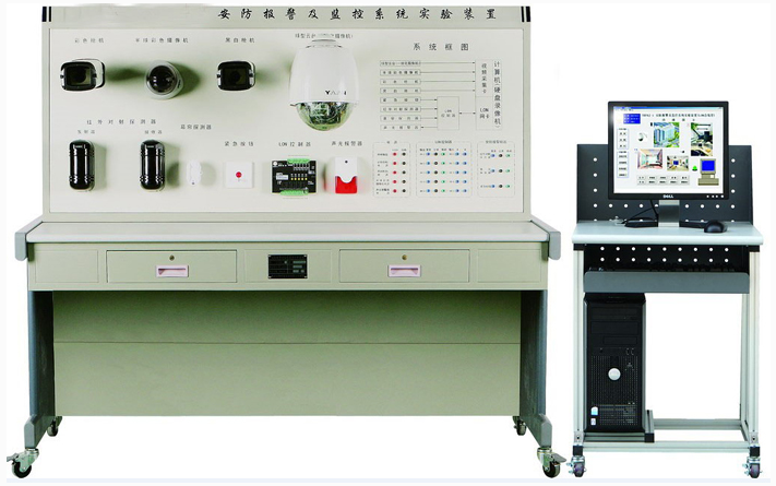 2.“安防報警及監(jiān)控系統(tǒng)實訓裝置( LON 總線型)”是依據目前建筑電氣、樓宇智能化專業(yè)的實訓內容精心設計的綜合實訓裝置。該裝置結合當前安防領域的先進技術和 LONWORKS 總線技術,配置多種類型攝像機 ( 如一體化攝像機、彩色攝像機等 ) 、硬盤錄像機(視頻采集卡)、主動或被動紅外探測器等,不僅具有防盜報警的功能,而且還實現了閉路監(jiān)控系統(tǒng)的圖像捕捉、傳輸、控制、圖像處理和顯示全部內容,整個系統(tǒng)穩(wěn)定可靠,安裝簡單易學,可為教學實訓提供更多的研究內容。