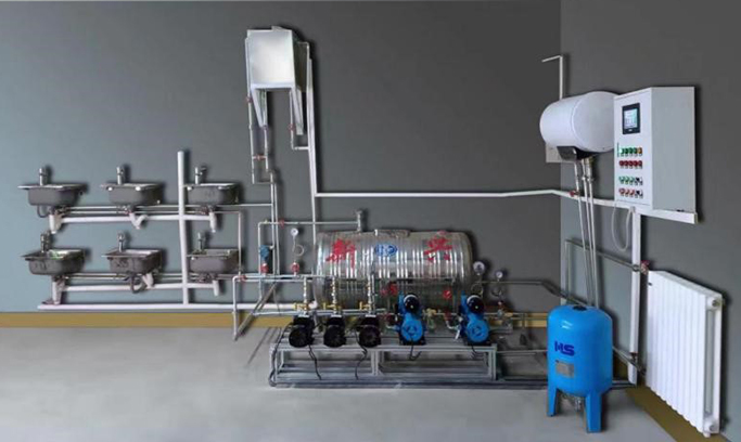 2 、熱水給水系統(tǒng):主要有電加熱鍋爐、熱水給水管道、水龍頭和淋浴頭等組成。管路采用 PPR 管進(jìn)行設(shè)計,可進(jìn)行 PPR 管的切割、熔接、安裝和通水試驗(yàn)操作,可對鍋爐進(jìn)行溫度調(diào)節(jié)控制操作。